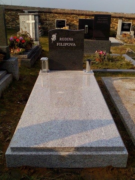 Jednohrob 190 x 80 cm cena 17 499,-Kč celý ze světlé žuly.:pohřby, kremace, kamenictví, kopání hrobů, pohřební služba
